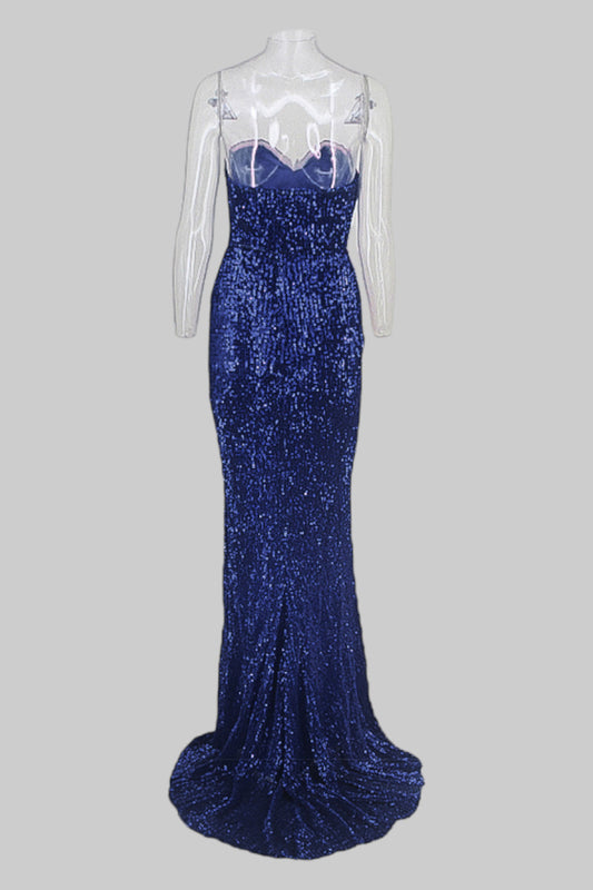 ESTELLE | Strapless Blue Sequin Formal Dress