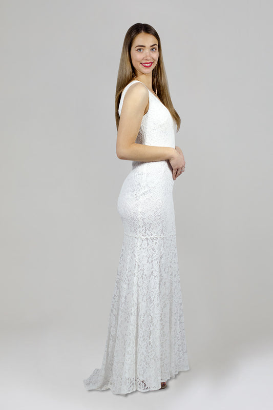 EUGINA | White Lace Formal Bridesmaid Dress