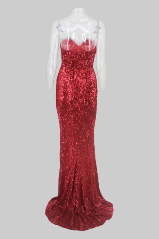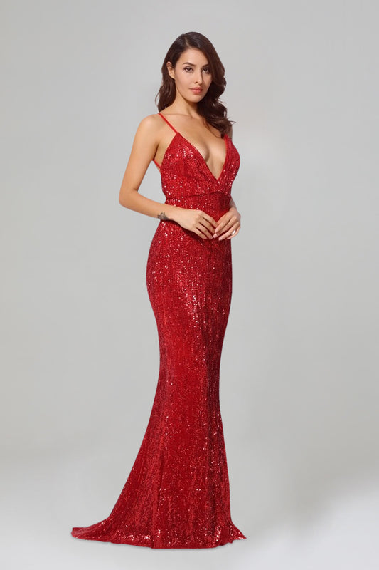 BETTINA | Backless Red Sequin Formal Dress