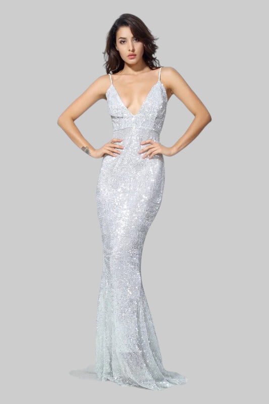 BETTINA | Backless Silver Sequin Formal Dress