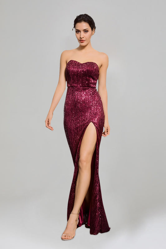 LUCIANNA | Strapless Sequin Burgundy Formal Dress