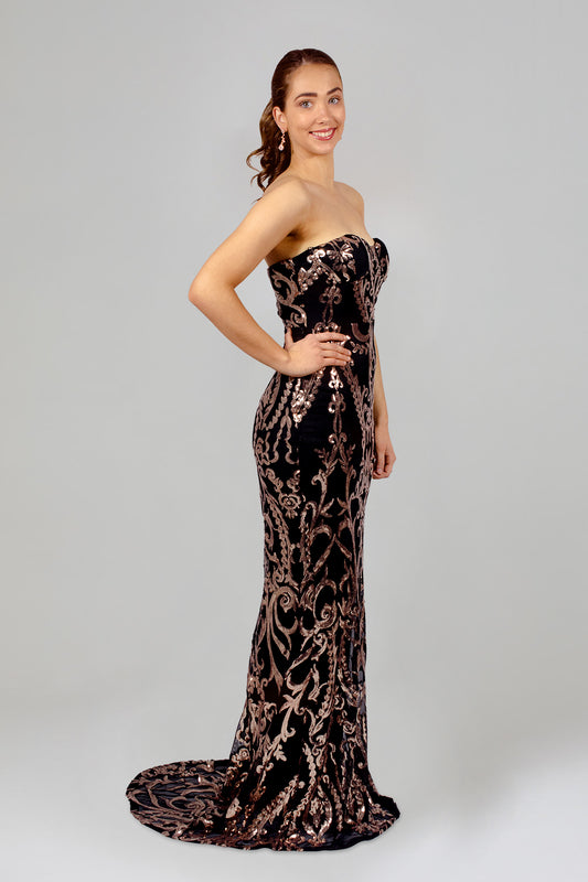 STELLINA | Strapless Rose Gold Sequin Formal Dress