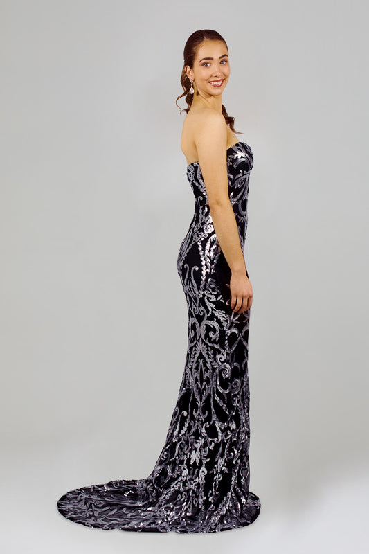STELLINA | Strapless Silver Sequin Formal Gown