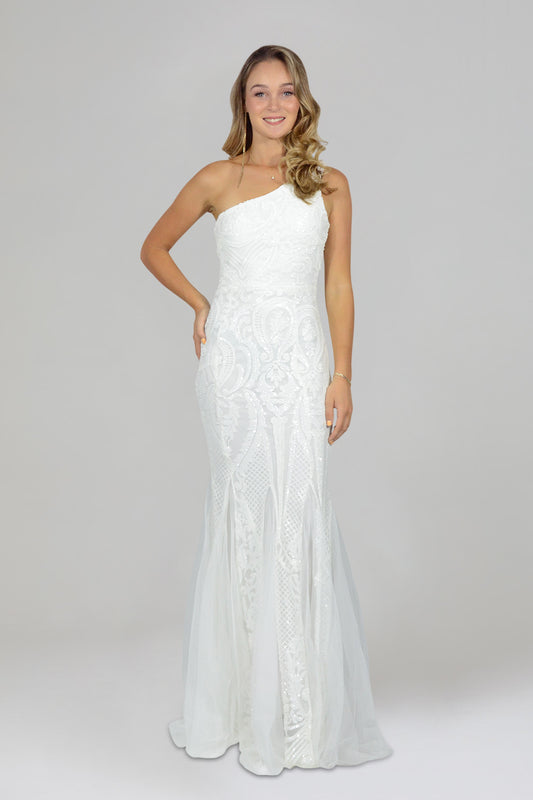ANALEAH | One Shoulder White Sequin Formal Dress