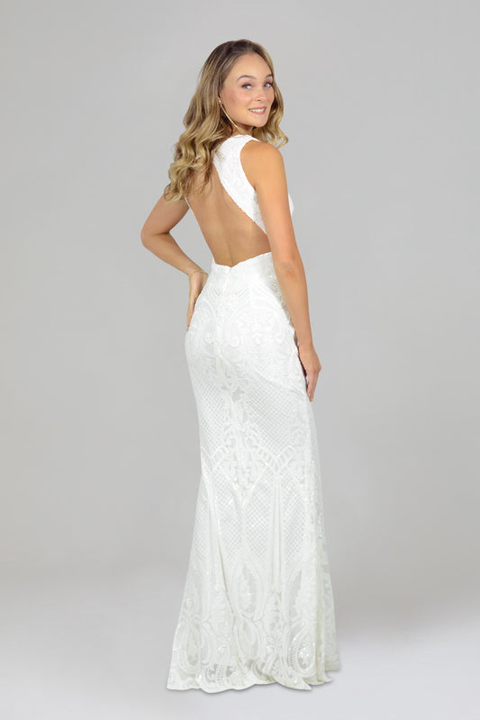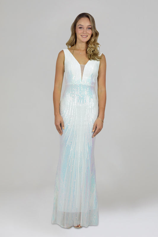 ZIENNA | Sleeveless Irridescent Sequin White Formal Dress