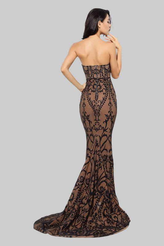 SHEERIE | Strapless Nude & Black Mermaid Formal Dress