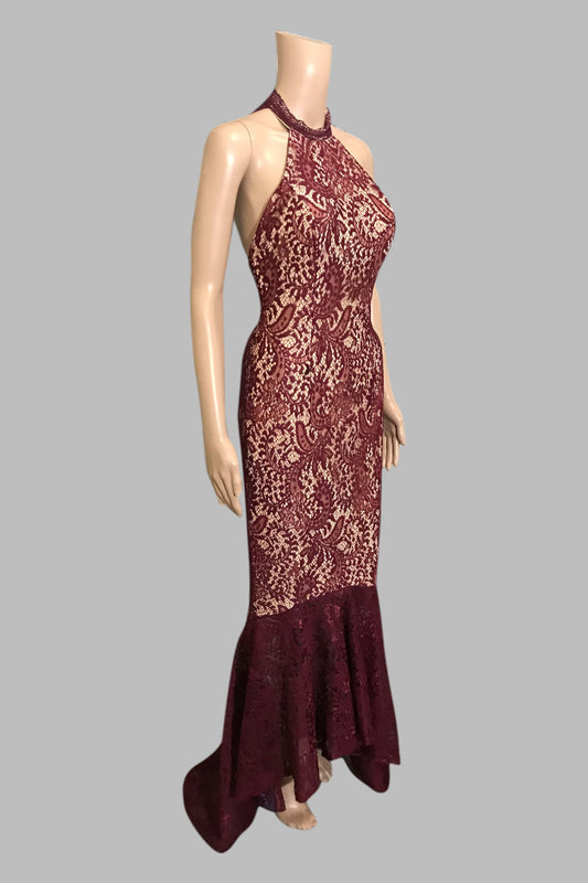 CARMALYN | Halter Burgundy Lace Bridesmaid Dress