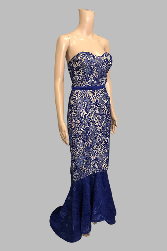 CARMALITA | Strapless Cobalt Blue Lace Bridesmaid Dress