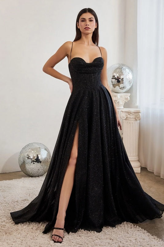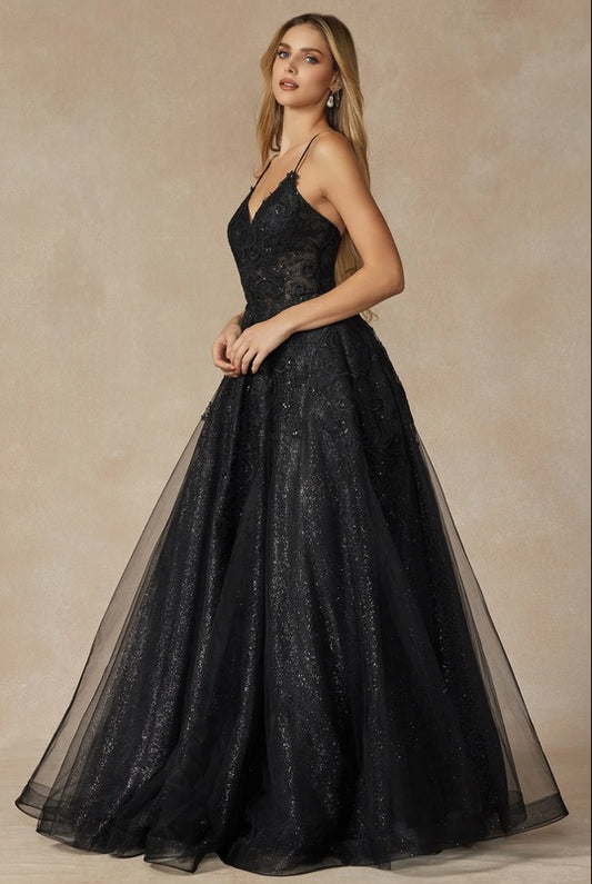 JOVINA | Strappy A Line Glitter Lace Black Wedding Dress