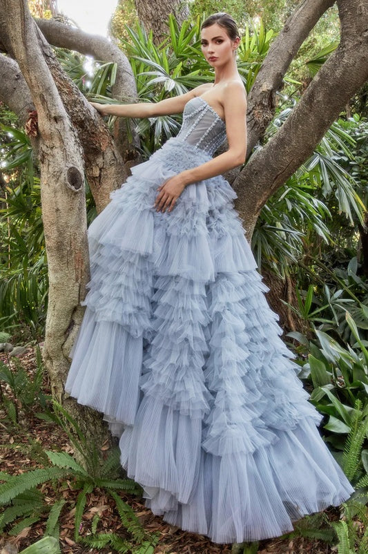 ALAYNA | Strapless Layered Tulle Steel Blue Wedding Gown