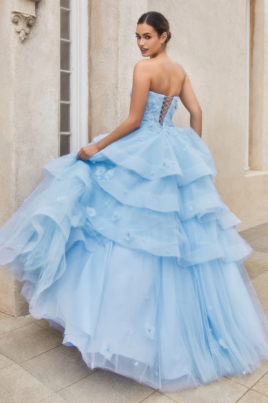 ARDEN | Strapless Layered Tulle Ball Gown Light Blue Wedding Dress