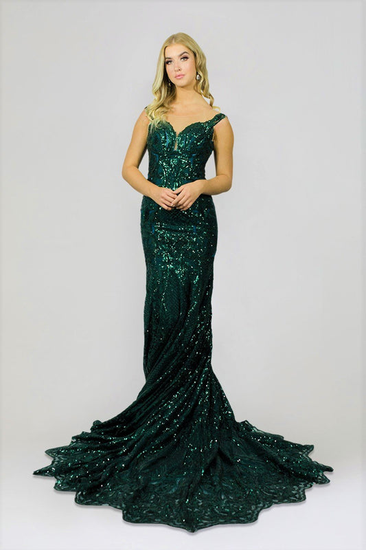 AURORA | Off Shoulder Shimmer Silver Wedding Dress