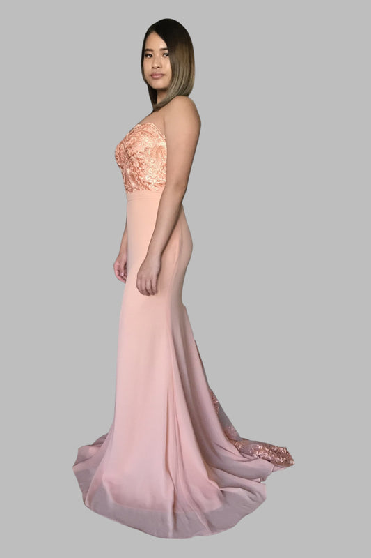 SELINA | Strapless Lace Bodice Peach Formal Dress