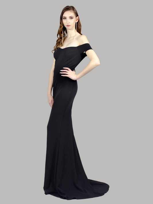 CHERISE | Off The Shoulder Fitted Black Bridesmaid Dress