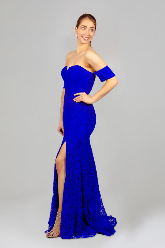 ELIXIS | Off Shoulder Sleeve Cobalt Lace Formal Dress