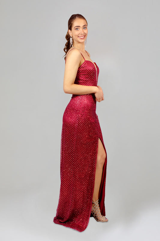 CATERINA | Shimmery Glitter Sheath Red Formal Dress