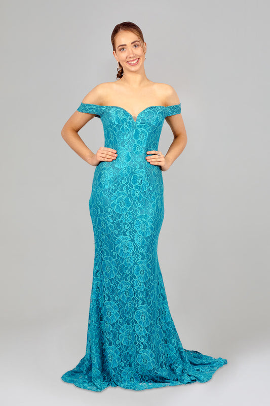 KERILYN | Lace Off The Shoulder Teal Formal Gown