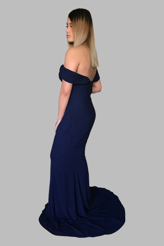 LUCINDA | Off The Shoulder Navy Bridesmaid Dress