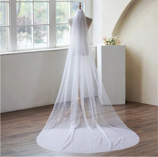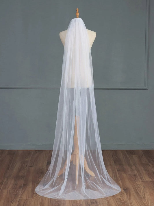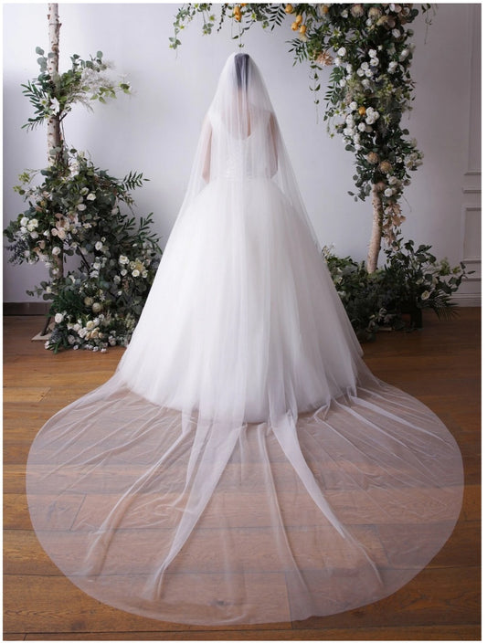DEVI | Minimalist Cathedral Length Tulle Veil