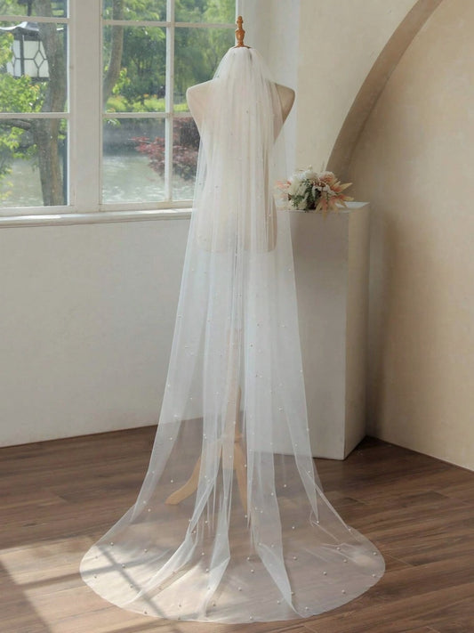 PEARLIE | Tulle With Pearl Chapel Length Veil