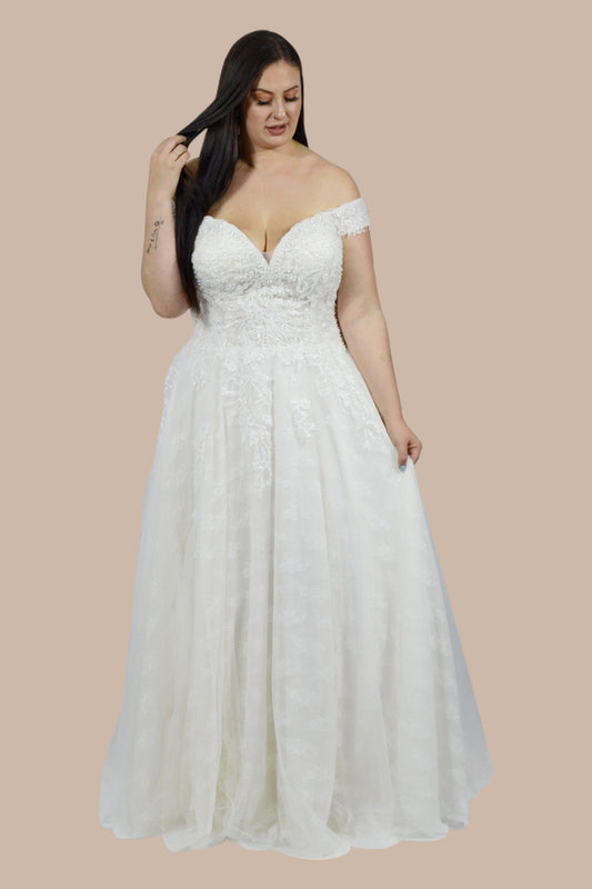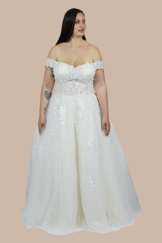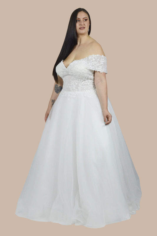 ARLISE | Off Shoulder Lace Bodice Ball Gown Plus Size Wedding Dress