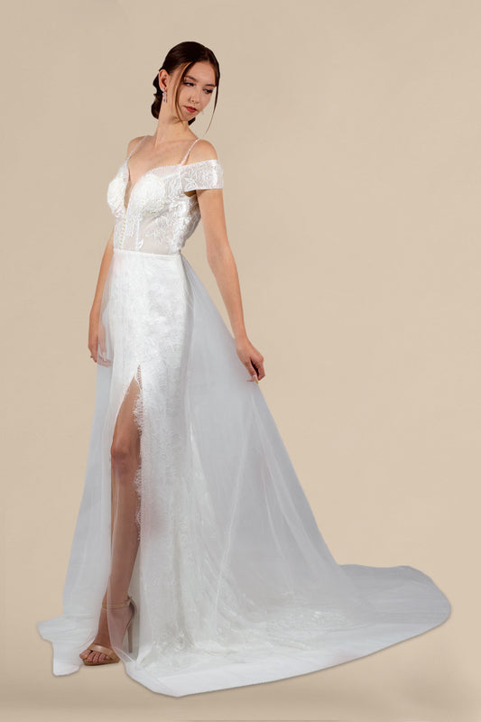 ADETTE | Off Shoulder Lace Beaded Boho Wedding Dress