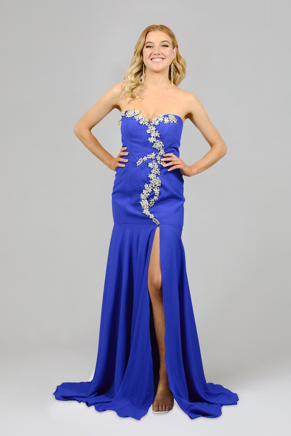 DARCELLE | Strapless Brooch Cobalt Blue Formal Dress