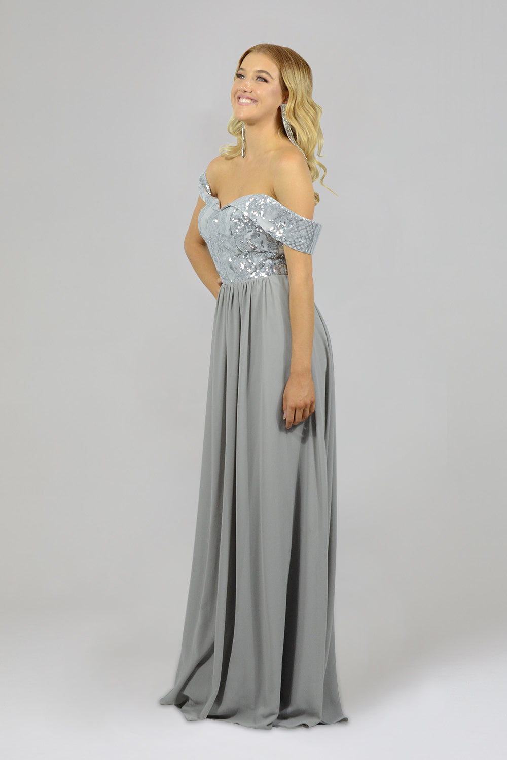 ELISE | Off Shoulder Sequin & Chiffon Grey Formal Dress