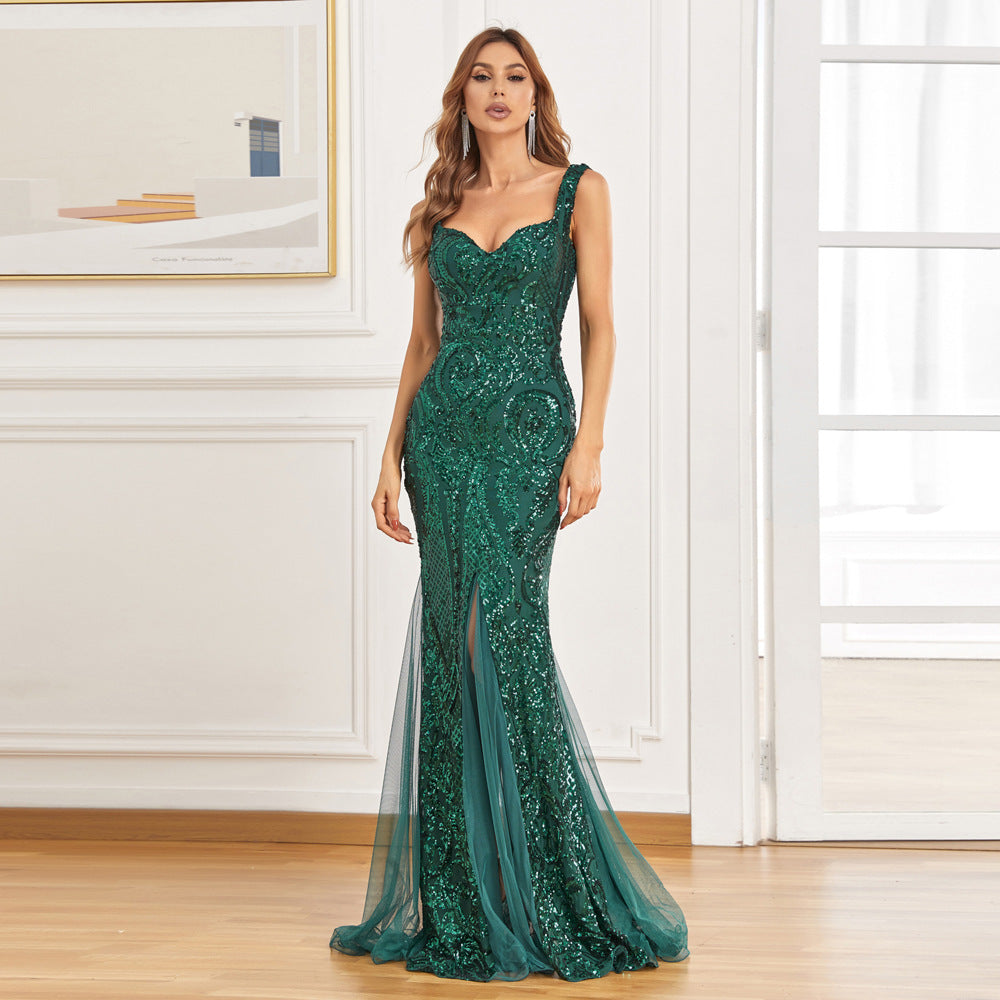 LILAS | Emerald Green Sequin Mermaid Formal Gown