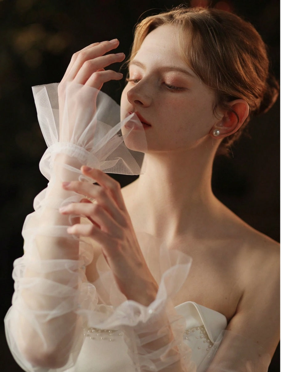 MAY | Sheer Tulle Ruched Detachable Sleeves