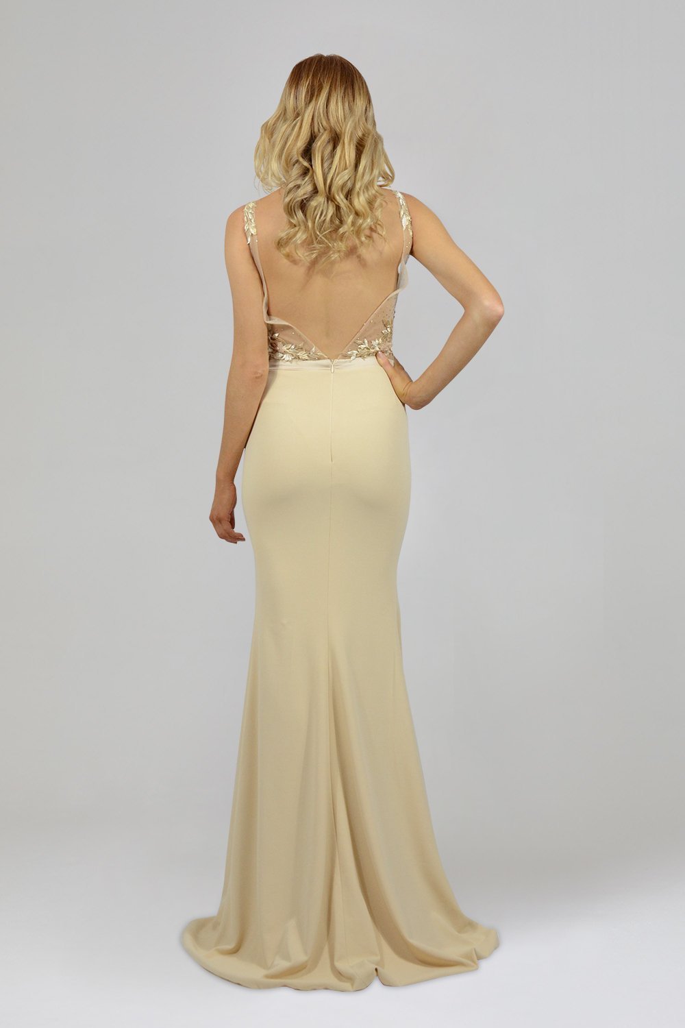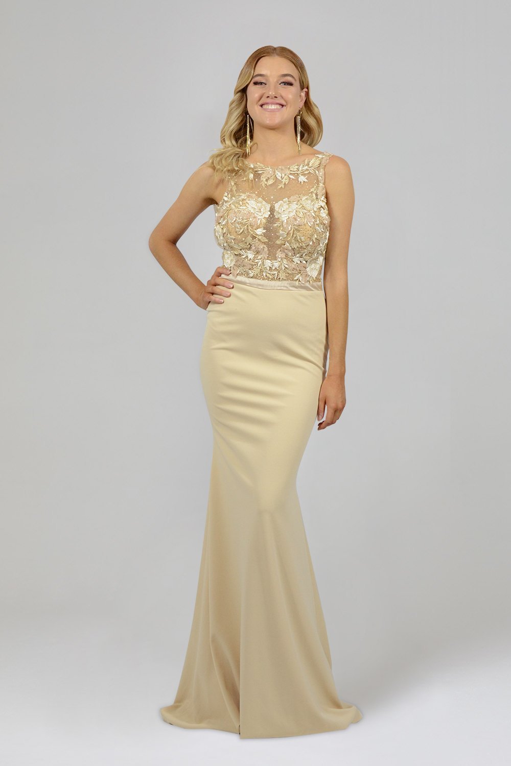 MONROE | Illusion Bodice Beige Sheath Formal Dress