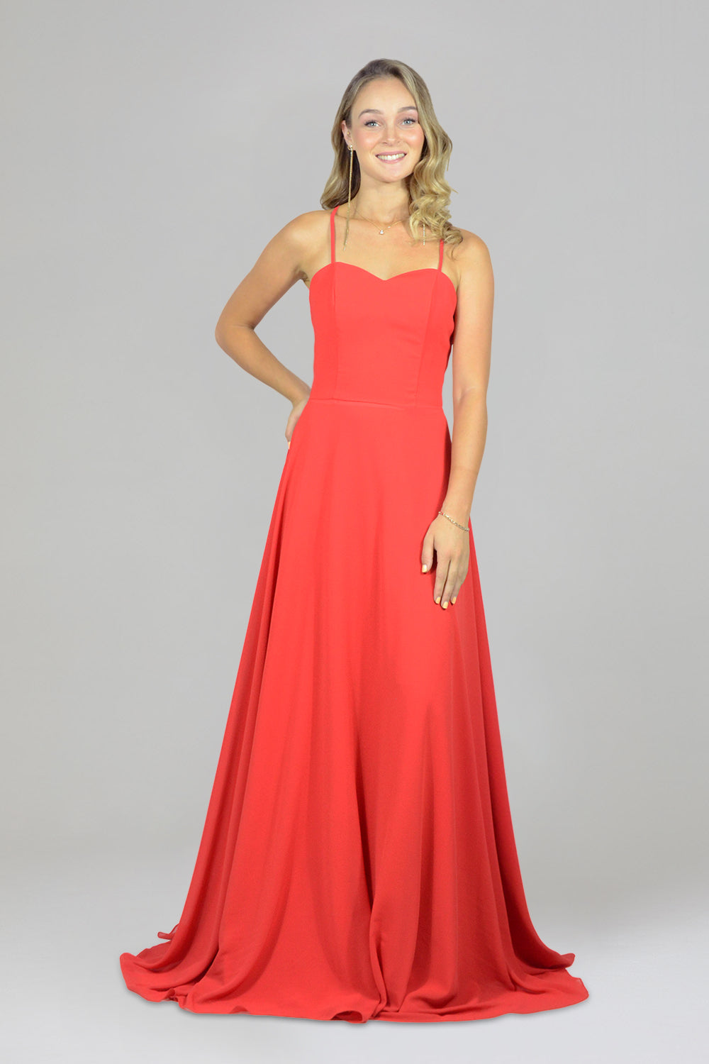 The simple spaghetti strap style with a sweetheart neckline flows into an A-line skirt that drapes gracefully from your body - perfect if you want comfort without anything too tight or hugging.